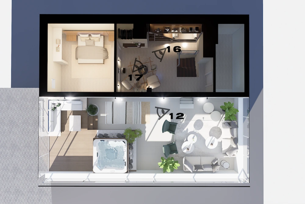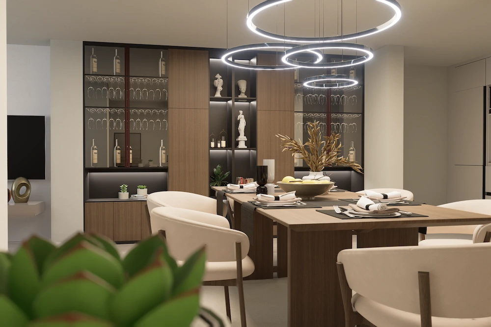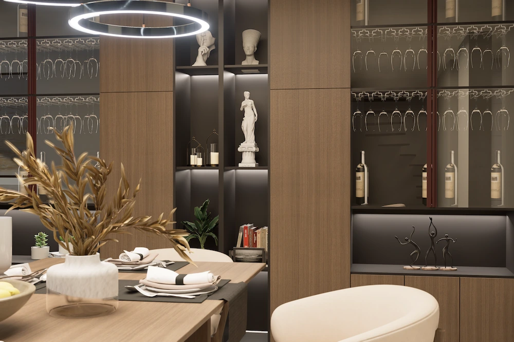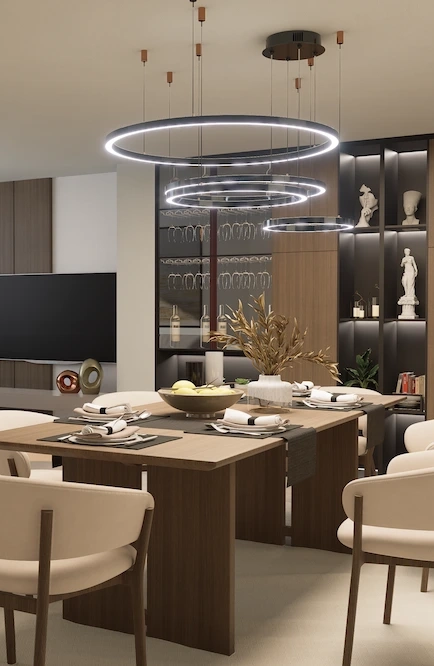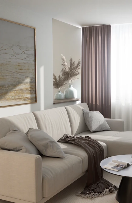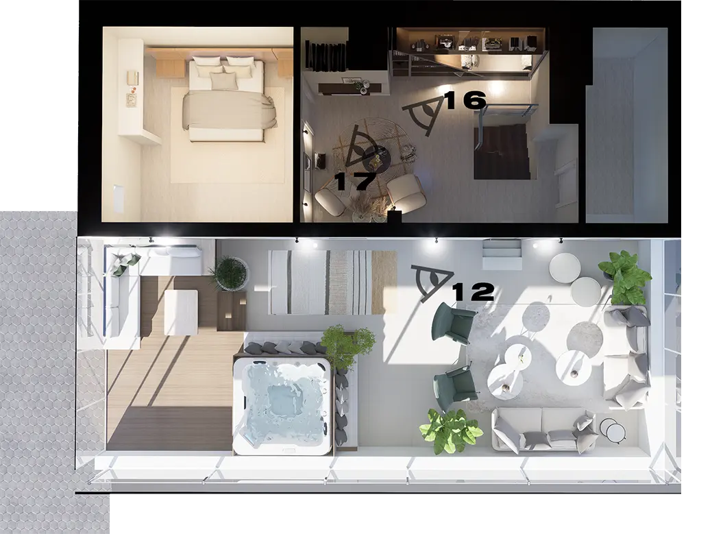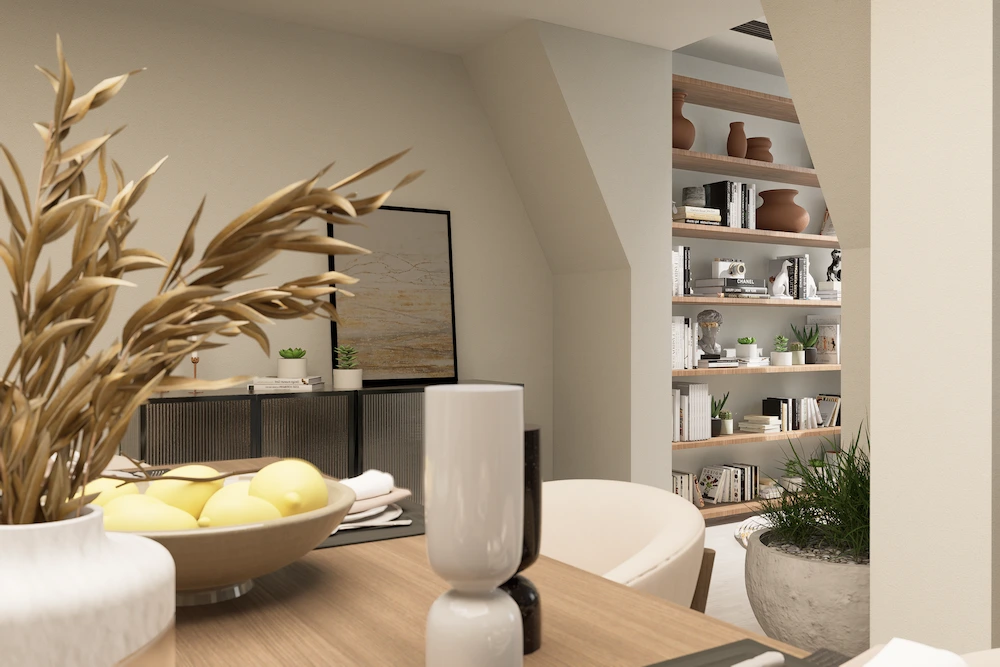 Ulazni prostor poziva vas unutra svojim minimalističkim, ali sofisticiranim detaljima. Kada zakoračite u dnevni boravak, osjećate kako prostor diše s vama. Visoki prozori propuštaju obilje svjetlosti, dok otvoreni plan pruža slobodu za prilagodbu. Ovo je srce doma – prostor za okupljanje, stvaranje i opuštanje.